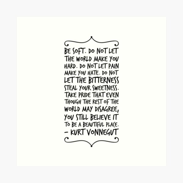 Source: quotefancy.com- Kurt Vonnegut Quote: “Be Soft. Do Not Let The World Make You Hard. Do Not Let Pain Make You Hate. Do Not Let The Bitterness Steal Your Sweetne...”
